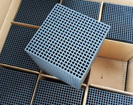 常用規格 50*50*100mm、100*100*100mm 使用溫度 小于400攝氏度;孔密度1600孔/塊、625孔/塊、400孔/塊; 空塔風速 0.8米/秒;比表面積 大于700平方/克 ;外觀 產品表面平整,沒有裂紋可直接使用或置入凈化柜、吸附床使用,若廢氣濃度高,排放量大,可兩臺凈化柜、吸附床輪換使用。