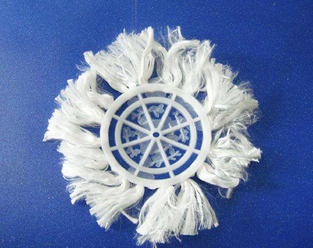 組合填料是在軟性填料和半軟性填料的基礎上發展而成的,它兼有兩者的優點。其結構是將塑料圓片壓扣改成雙圈大塑料環,將醛化纖維或滌綸絲壓在環的環圈上,使纖維束均勻分布;內圈是雪花狀塑料枝條,既能掛膜,又能有效切割氣泡,提高氧的轉移速率和利用率。使水氣生物膜得到充分交換,使水中的有機物得到處理。